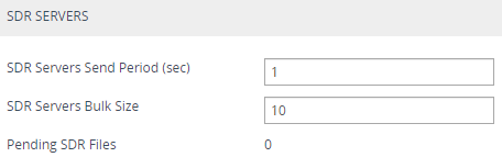 In the 'SDR Servers Send Period' field, configure the periodic interval (in seconds) at which the device checks if an SDR file is available for sending to the remote server. If you don't want the device to send the files to the server, configure the parameter to "0".