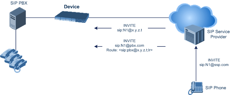 According to this mechanism, the PBX delivers to the service provider in the Contact header field of a REGISTER request a template from which the service provider can construct contact URIs for each of the AORs assigned to the PBX and thus, can register these contact URIs within its location service. These registered contact URIs can then be used to deliver to the PBX inbound requests targeted at the AORs concerned. The mechanism can be used with AORs comprising SIP URIs based on global E.164 numbers and the service provider's domain name or sub-domain name.