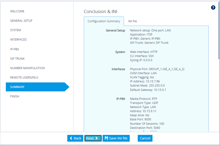 To view the configuration in ini-file format, click the INI File tab.