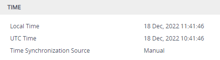 'Time Synchronization Source': Indicates the method used by the device to obtain and synchronize its date and time: |