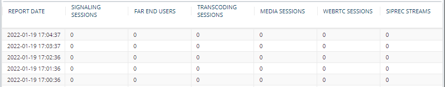 You can view resource consumption reports of the Floating or Flex License that the device periodically sends to OVOC. This includes SBC capacity (signaling sessions, media sessions, transcoding sessions, and far-end user registrations), WebRTC sessions, and SIPREC streams.