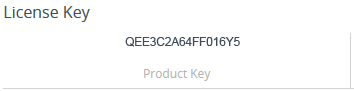 | ■ | License Key page (see Viewing the License Key). The Product Key is displayed in the read-only 'Product Key' field, as shown in the example below: |
