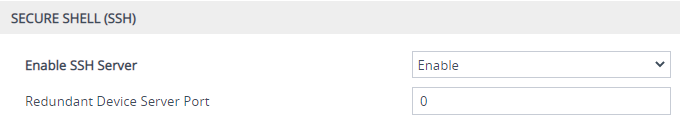 In the 'Redundant Device Server Port' field (SSHRedundantProxyPort), configure a port for SSH through which the active device accesses the redundant device. This proxy port must be different to the active device's regular SSH server port (configured in the 'Server Port' parameter). |
