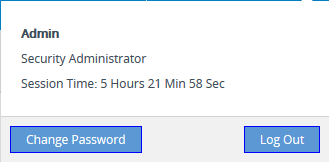 Button displaying the username of the currently logged in user. If you click the button, a drop-down box appears: