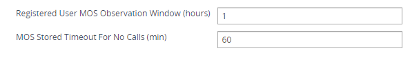 In the 'MOS Stored Timeout For No Calls' field, enter the time (in minutes) of no calls for a registered user after which the MOS measurement for that user is deleted (reset to zero). |
