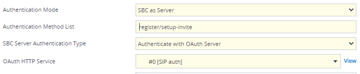 | ● | 'SBC Server Authentication Type': Authenticate with OAuth Server |