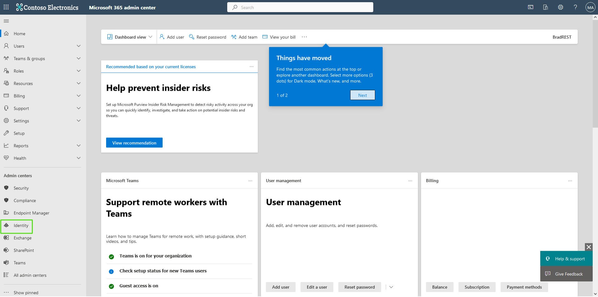 | 2. | Login to the Microsoft Entra admin center and navigate to Identity. |