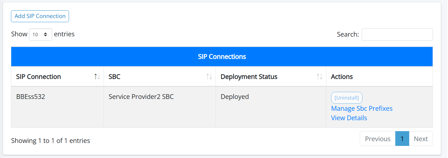 Enter text string in the search box to search for a specific SIP Connection name or for a string associated with it's related details. |
