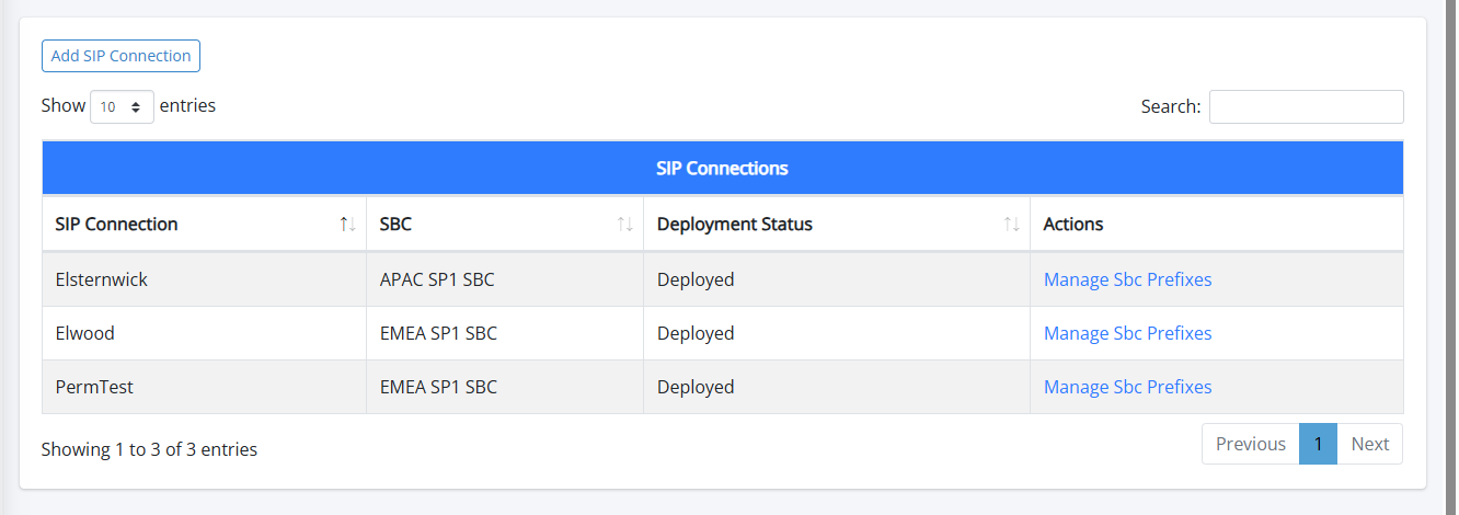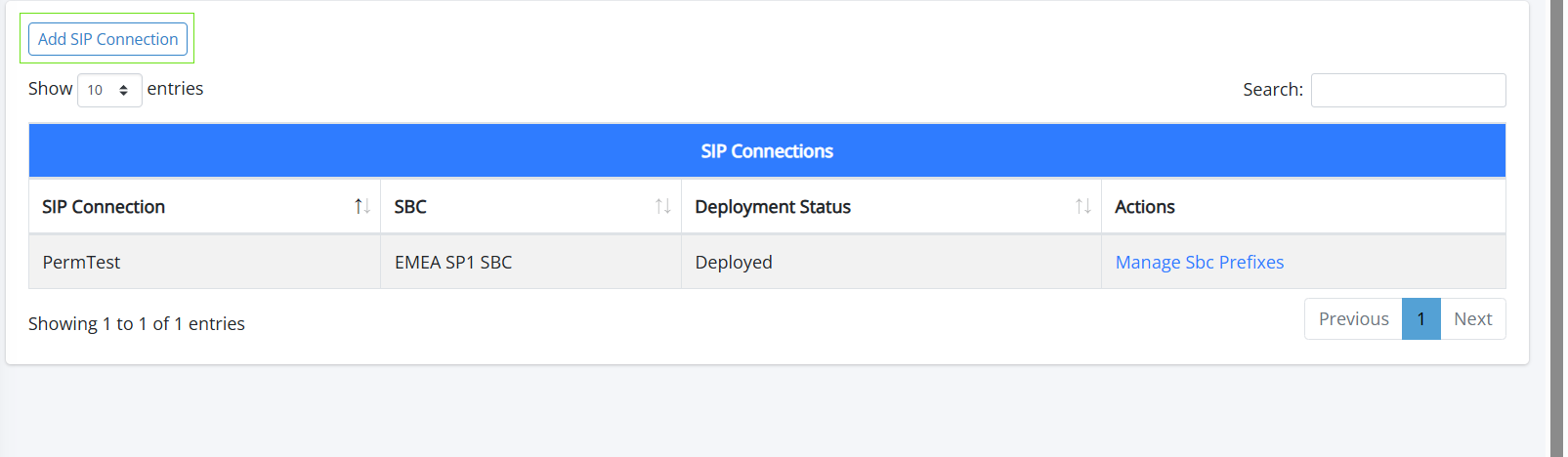 In the Service portal, open the SIP Connections page to view the new connection. |