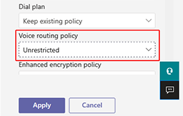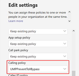 | 3. | Set the Calling Policy to UMPPreventTollBypass and Voice routing policy to Unrestricted. |