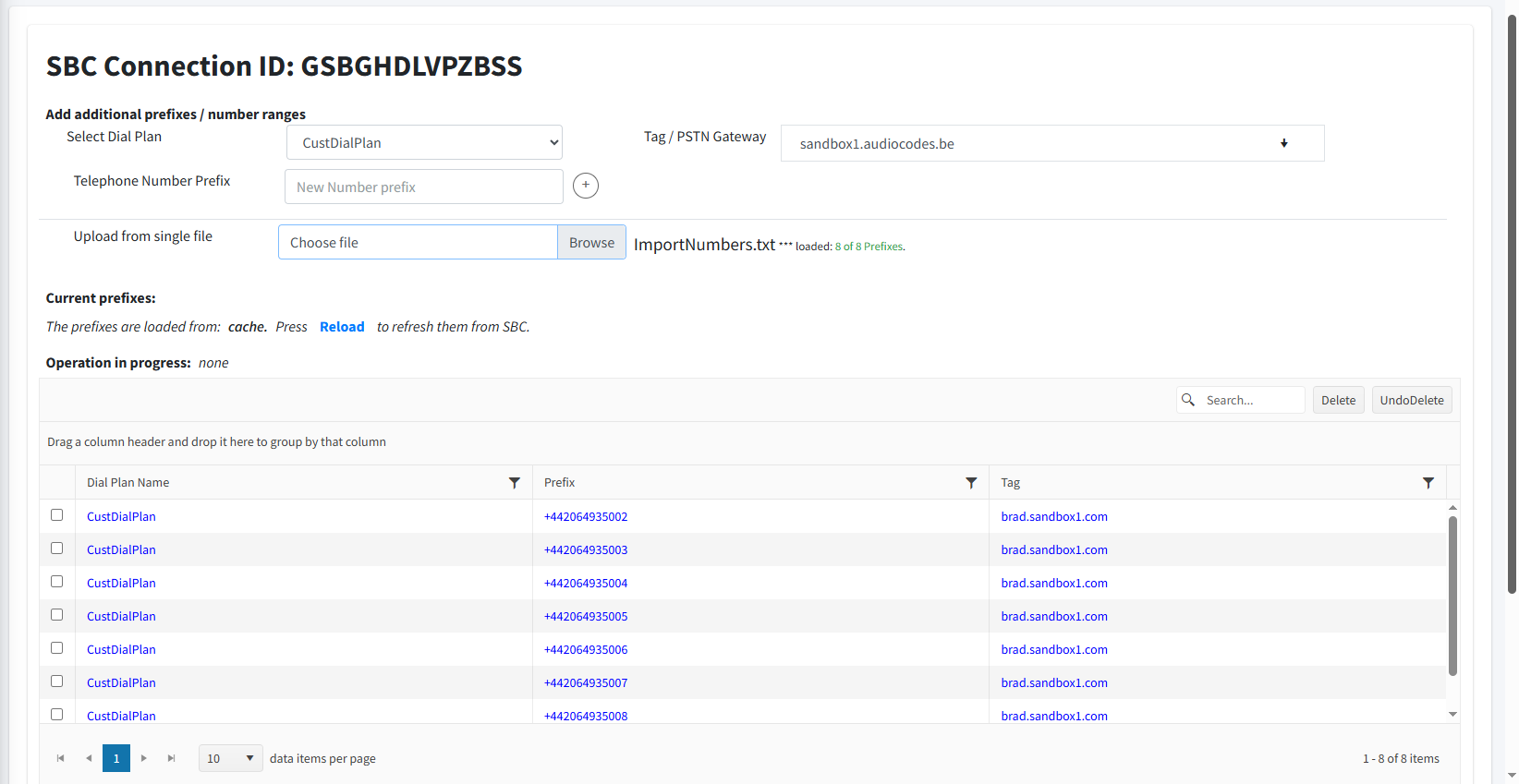 Once the dialplan is imported, the new entries are displayed in the Dialplan on the SBC device with the rule name inheriting the SIP Connection ID string.