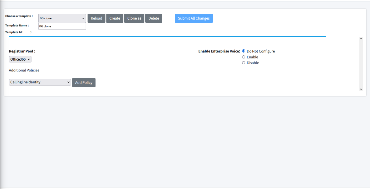 Templates can be created to automate Teams Calling policies and number assignment for users and can then be bound to Azure AD security groups in Binding Templates to Security Groups. You can create templates to apply to logical group associations in your Active Directory tree. For example, create template groups according to regional sites or functional units. Number ranges can be assigned from configured ranges (see Managing Number Ranges) or from an external file (see