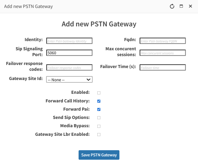 2. Configure parameters according to the table below and then click Save PSTN Gateway.