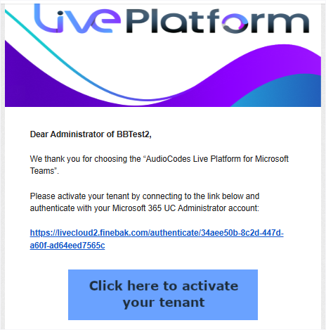 An email similar to the following is sent to the customer tenant admin. If you did not receive an email, click Resend Invitation to send it again.