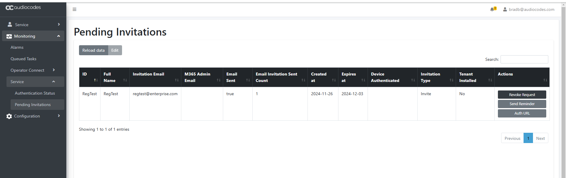 | 16. | In the Multitenant interface, open the Pending Invitations screen (see Customer Invitations), view the "Created at" and "Expires at" of the claimed token. |