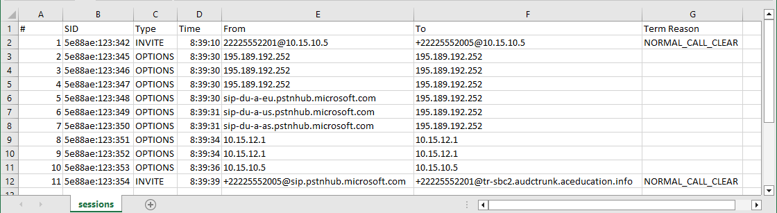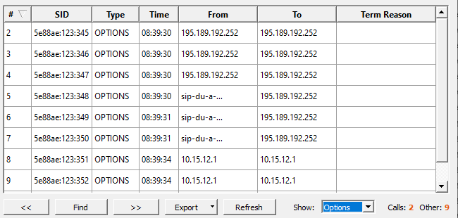 Search for SIP Sessions: