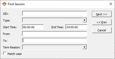 i. Click Next or Prev to find sessions based on your search criteria.